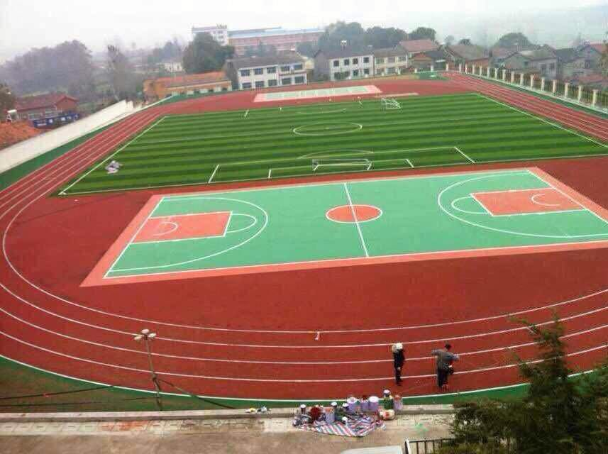 来源:武汉奥体家体育材料有限公司 发布时间:2017-11-27 返回列表2017年11月湖北省当阳市双莲中学学校塑胶跑道竣工投用,新建成的塑胶跑道以红色为主,跑道全长300米,分6个道次,并建有100米直道,内设篮球场、足球场,基本上可满足多种体育竞技项目比赛的需求。
